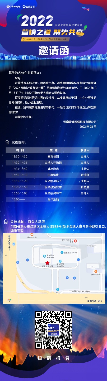 【邀請函】倒計時還有3天 2022營銷之道 聚勢共贏 ” 百度營銷創新沙龍會議誠邀您的到來。