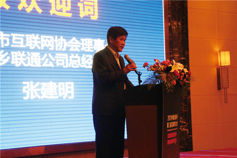 新鄉(xiāng)市互聯(lián)網(wǎng)協(xié)會(huì)理事長(zhǎng)張建明先生為大會(huì)致歡迎詞