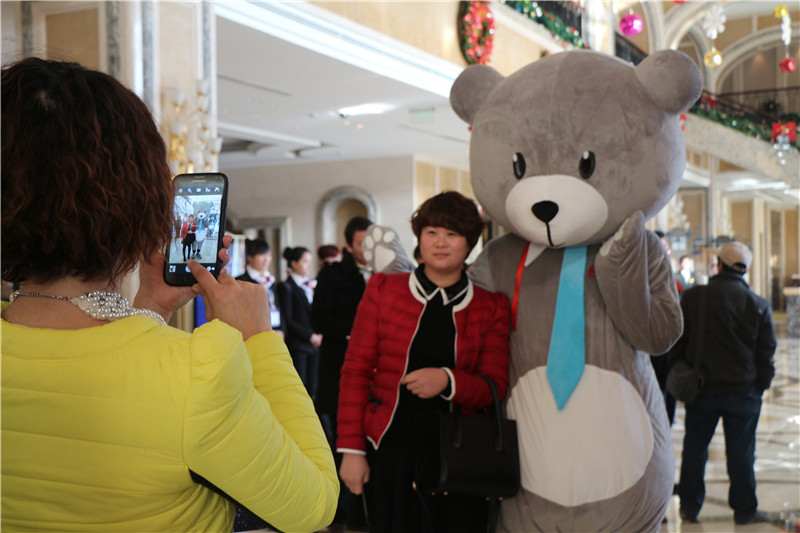 嘉賓與可愛(ài)的人偶熊合影