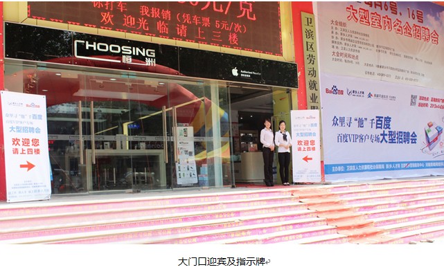 2013年4月26日,眾里尋“他”千百度—百度VIP客戶專場大型招聘會,在新鄉人力資源市場隆重舉辦。本次活動僅針對百度的優質客戶,為我們的客戶解決人才招聘難題,為社會上的優秀人才提供發揮才能的平臺。今天,我們也充當了一次“度娘”,為優質企業和優秀人才搭建橋梁,結下美滿的“姻緣”。