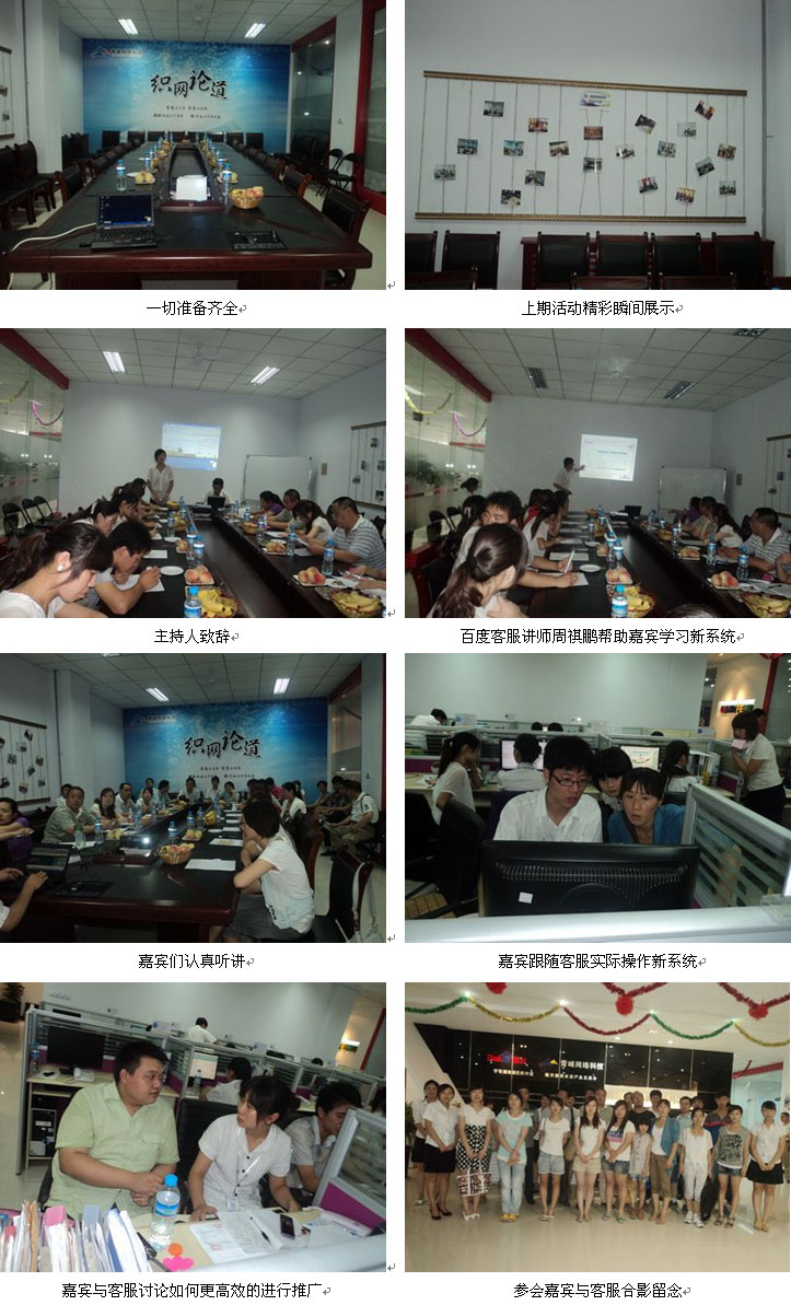 2011年7月22日,織網論道第二期活動在青峰網絡會議室如期舉行,從下午二點三十分,嘉賓陸續到場,早到的客戶與客服同學們進行了良好的溝通。二點五十分,隨著主持人的出場,會議宣布正式開始。本次活動主要講解新升級的百度后臺系統。