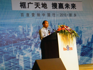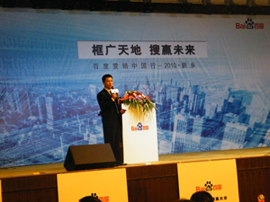 2010年5月14日,由全球中文搜索引擎百度舉辦的“營銷中國行”大型論壇在新鄉舉行。本次百度“營銷中國行”要走遍全國一百多個城市,將匯聚近十萬大中小企業和聯盟伙伴共同參與,旨在探討在當今全球經濟復蘇的大背景下,如何通過創新的網絡營銷方式來推動企業的發展和地方經濟的繁榮。