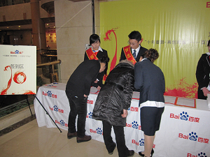 恭迎嘉賓 繁忙的簽到區 主持人致開場詞 嘉賓簽名留念 主講人郭凡先生做精彩主題演講 客服表演優美舞蹈 小品“開鎖” 優秀客戶帶來街舞表演 游戲“聲名遠揚” 游戲“圓聚” 嘉賓代表發言 客服齊唱“明天會更好” 會議最后在一片歡聲笑語中結束,通過這次會議,將客戶與百度的距離拉的更近了,更是增強了客戶對百度信任。面對已經到來的2010年,百度仍將不負眾望,努力回報廣大客戶的支持與信任。相信眾多的中小企業也會繼續把百度當做堅定的長久的合作伙伴,在新的一年里和百度一起蓄勢待發,再創輝煌!