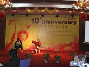 1月15日下午15:30分,“十年蓄勢 再創輝煌”—百度客戶答謝會在洛陽京安牡丹城酒店隆重舉行。會間,不僅客服為來賓做精彩節目表演助興,更有百度優秀客戶帶來的熱辣街舞表演,讓嘉賓們感受到時尚的潮元素,把答謝會推向了高潮。