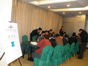繁忙的演示區(qū) 會后一對一的講解