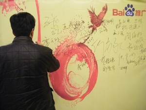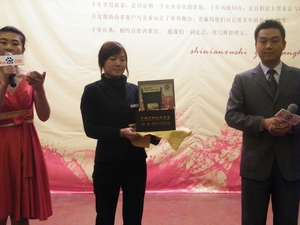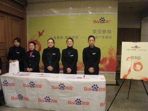 酒店醒目橫幅 恭迎嘉賓 繁忙的簽到區 客戶簽名留念 會場全景 公司領導致辭 嘉賓踴躍參答 百度客戶服務區域經理張弦做精彩主題演講 圓聚 嘉賓代表祝福百度 百度十歲了 公司領導與百度領導共同吹熄許愿之燭 本土特色促銷禮品展示 百度客服齊唱“明天會更好” 會議最后在一片歡聲笑語中結束,通過這次會議,將客戶與百度的距離拉的更近了,更是增強了客戶對百度信任。面對即將到來的2010年,百度仍將不負眾望,努力回報廣大客戶的支持與信任。相信眾多的中小企業也會繼續把百度當做堅定的長久的合作伙伴,在新的一年里和百度一起蓄勢待發,再創輝煌!