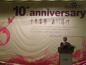 12月25日下午三點三十分,“十年蓄勢 再創輝煌”—百度客戶答謝會在新鄉市國際大酒店隆重舉行。在這個百度十周年即將到來的日子,天氣也格外的晴朗,客戶熱情高漲,整場會議氣氛熱烈。