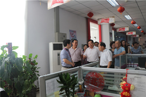 2014年7月28日上午,新鄉市政協副主席楊書廷、開發區黨委書記劉慶貴一行蒞臨青峰網絡科技有限公司參觀指導。