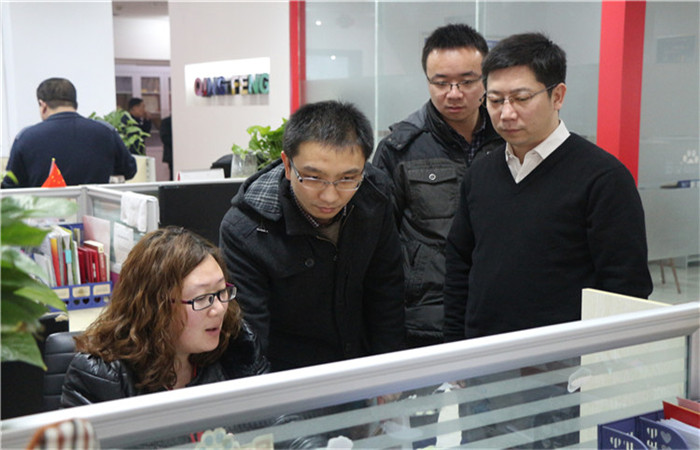1月14日上午,河南省電子商務示范企業評審組領導一行蒞臨河南青峰網絡科技有限公司視察指導,河南青峰總經理岳振寧先生、企管部總監王艷女士、行政部高級經理付士奇先生隨行陪同。公司為每位到場的領導送上了公司的宣傳資料,讓領導對公司有了大致的了解。